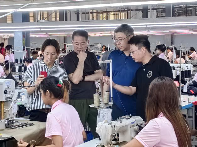 在緬期間,公司生產(chǎn)經(jīng)營(yíng)管理團(tuán)隊(duì)先后接待了到訪的部分重點(diǎn)出口客戶,雙方就進(jìn)一步加強(qiáng)合作深入交換意見,并達(dá)成共識(shí)。近年來(lái),國(guó)際公司紡織服裝出口板塊依托境外生產(chǎn)基地,為公司“工貿(mào)技”結(jié)合轉(zhuǎn)型、境內(nèi)外聯(lián)動(dòng)布局,為業(yè)務(wù)部門牽頭、生產(chǎn)環(huán)節(jié)可控、研發(fā)設(shè)計(jì)高效的產(chǎn)業(yè)化供應(yīng)鏈平臺(tái)打下堅(jiān)實(shí)基礎(chǔ)。生產(chǎn)經(jīng)營(yíng)管理團(tuán)隊(duì)還介紹了公司即將在孟加拉國(guó)建設(shè)生產(chǎn)基地及業(yè)務(wù)拓展合作的產(chǎn)業(yè)布局、實(shí)施路徑和推進(jìn)節(jié)點(diǎn),詳細(xì)介紹了公司從工貿(mào)技結(jié)合到工貿(mào)技融合、境內(nèi)外聯(lián)動(dòng)到區(qū)域性聯(lián)動(dòng)的轉(zhuǎn)型升級(jí)舉措。到訪客戶對(duì)公司境外生產(chǎn)基地優(yōu)秀的管理水平、先進(jìn)的生產(chǎn)工藝和精良的生產(chǎn)效率表示認(rèn)可,并就雙方接下來(lái)合作細(xì)節(jié)、樣品款式等進(jìn)行深入探討。